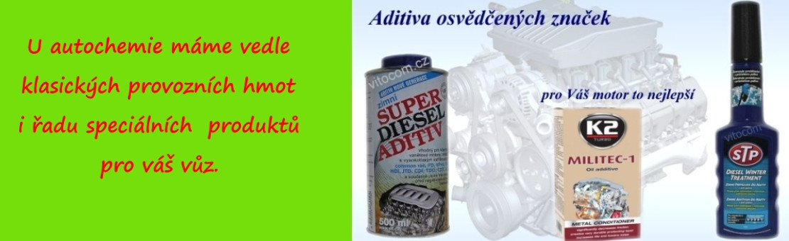 Vážení zákazníci, máme zde úvod do naší nabídky Vitocom. Na úvod musíme uvést, že prezentované zboží na našem e-shopu je určeno jen pro osobní odběr na naší prodejně. Zboží v současné době nezasíláme. Na našich stránkách naleznete komplexní nabídku autochemie, autokosmetiky, autodoplňků, autopříslušenství, programu pro opravy a údržbu. Dále Vám nabídneme zajímavou škálu technických lepidel a v neposlední řadě pak drogistické zboží a kosmetiku.