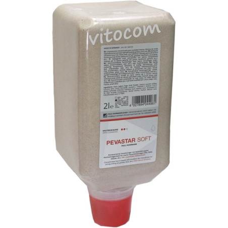 Mycí pasta Pevastar v 2lt plastové láhvi, je speciální mycí prostředek pro silně znečištěné ruce. Působí na tuky, oleje, dehty, asfalt, barvy, tiskařské barvy a pryskyřice. Lanolín, který je v tomto přípravku obsažen, zabraňuje vysušování rukou po umytí. Neobsahuje alkalické látky a je příjemně parfémován. Abrasivní prostředky nejsou přírodního charakteru, takže nepůsobí potíže v odpadních systémech.